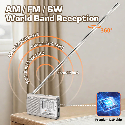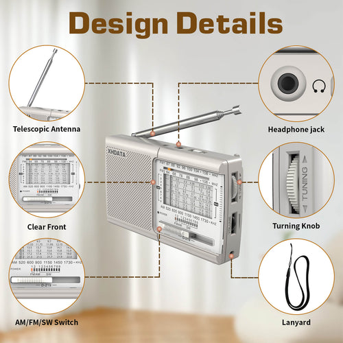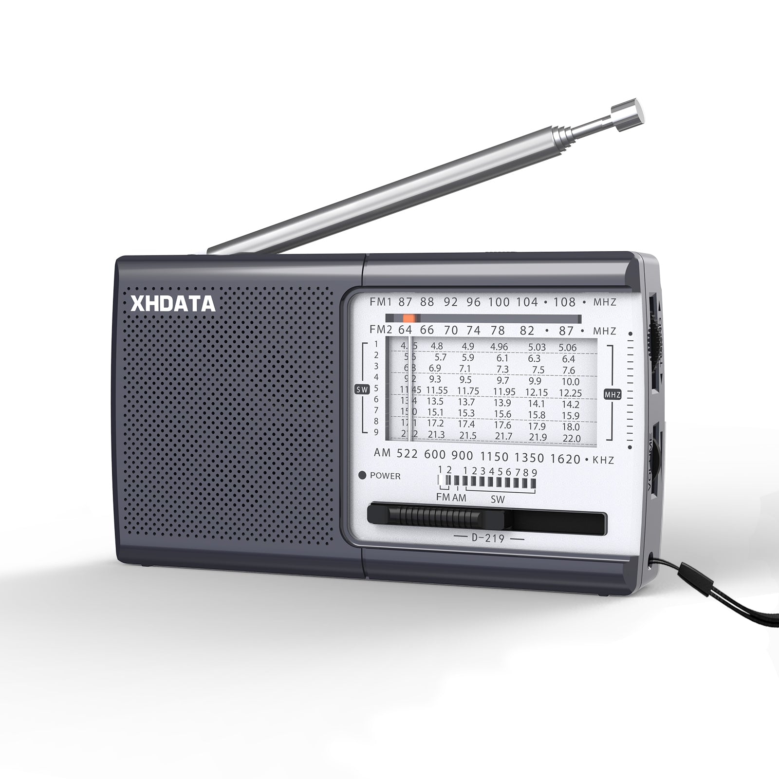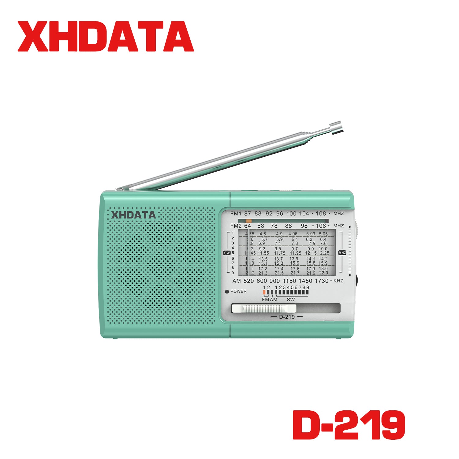 XHDATA D-219 is a cost-effective product launched by XHDATA at the end of 2022. D-219 is small in size and easy to carry around. It can receive FM, AW and SW frequency bands with good reception effect. The D-219 radio uses high-quality radio integrated circuits with excellent sound quality and clear and loud sound. It is suitable for various occasions such as family gatherings, parties, outings, and travel. In addition, the D-219 adopts precise pointer tuning, which not only has high sensitivity, but also is easy to operate.
